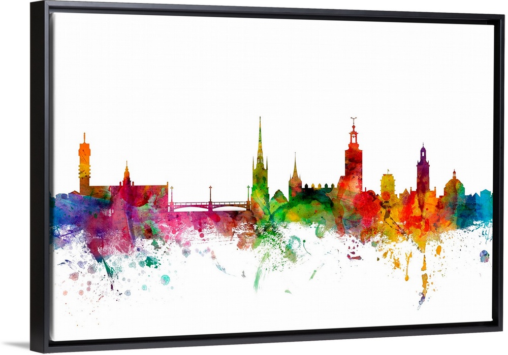 <p>Watercolor artwork of the Stockholm skyline against a white background.</p>