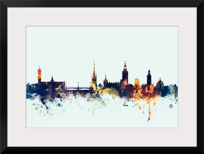 <p>Watercolor art print of the skyline of Stockholm, Sweden (Sverige).</p>