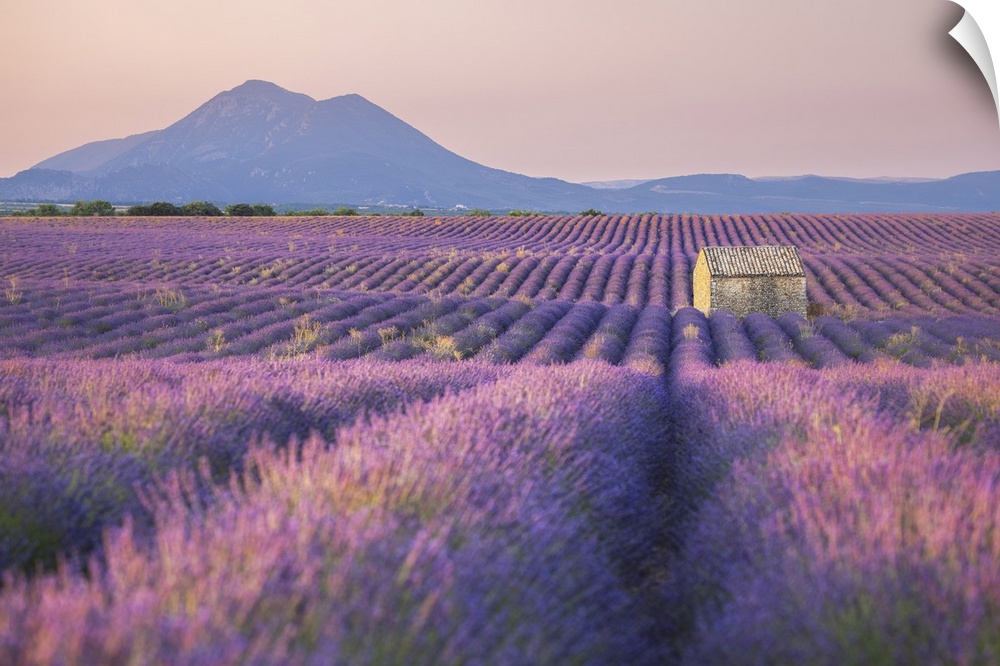 <p>Stone barn in lavender field, Plateau de Valensole, Provence-Alpes-Cote d'Azur, Provence, France</p>