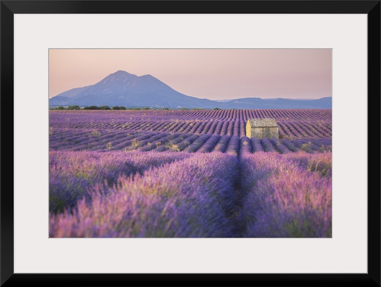 <p>Stone barn in lavender field, Plateau de Valensole, Provence-Alpes-Cote d'Azur, Provence, France</p>