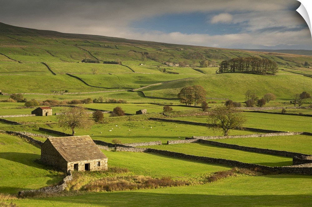 <p>Stone barns and dry stone walls in beautiful Wensleydale in the Yorkshire Dales National Park, Yorkshire, England. Autumn (October) 2018</p>