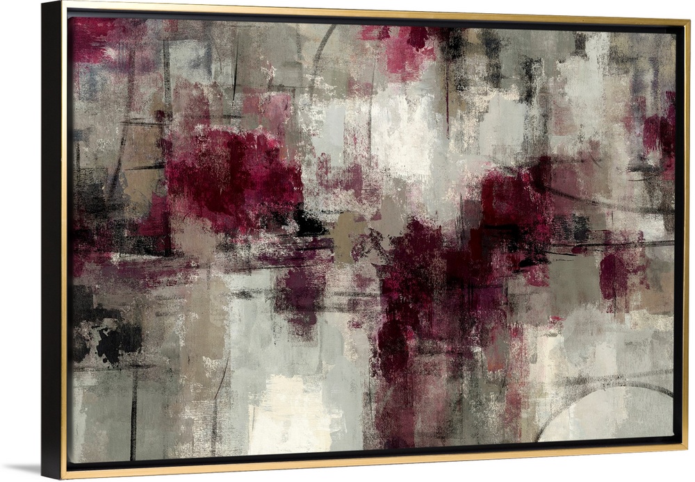 <p>Abstract painting with dry brush strokes and patches of maroons on a neutral textured background.</p>
