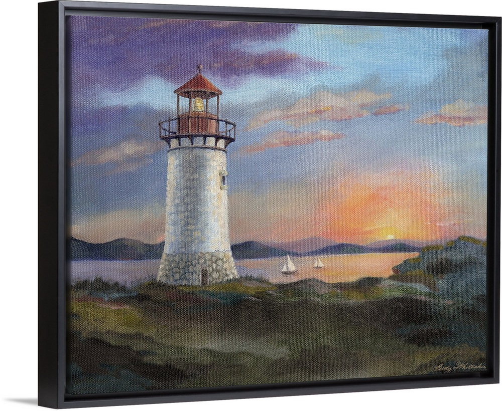 Art Coastal Beach House Décor Contemporary Art Lighthouse Seascapes Sunset Painting Betty Whiteaker