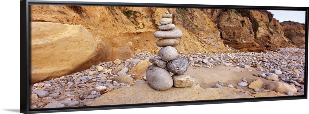 <p>USA, California, San Mateo County, Stone sculpture on beach</p>