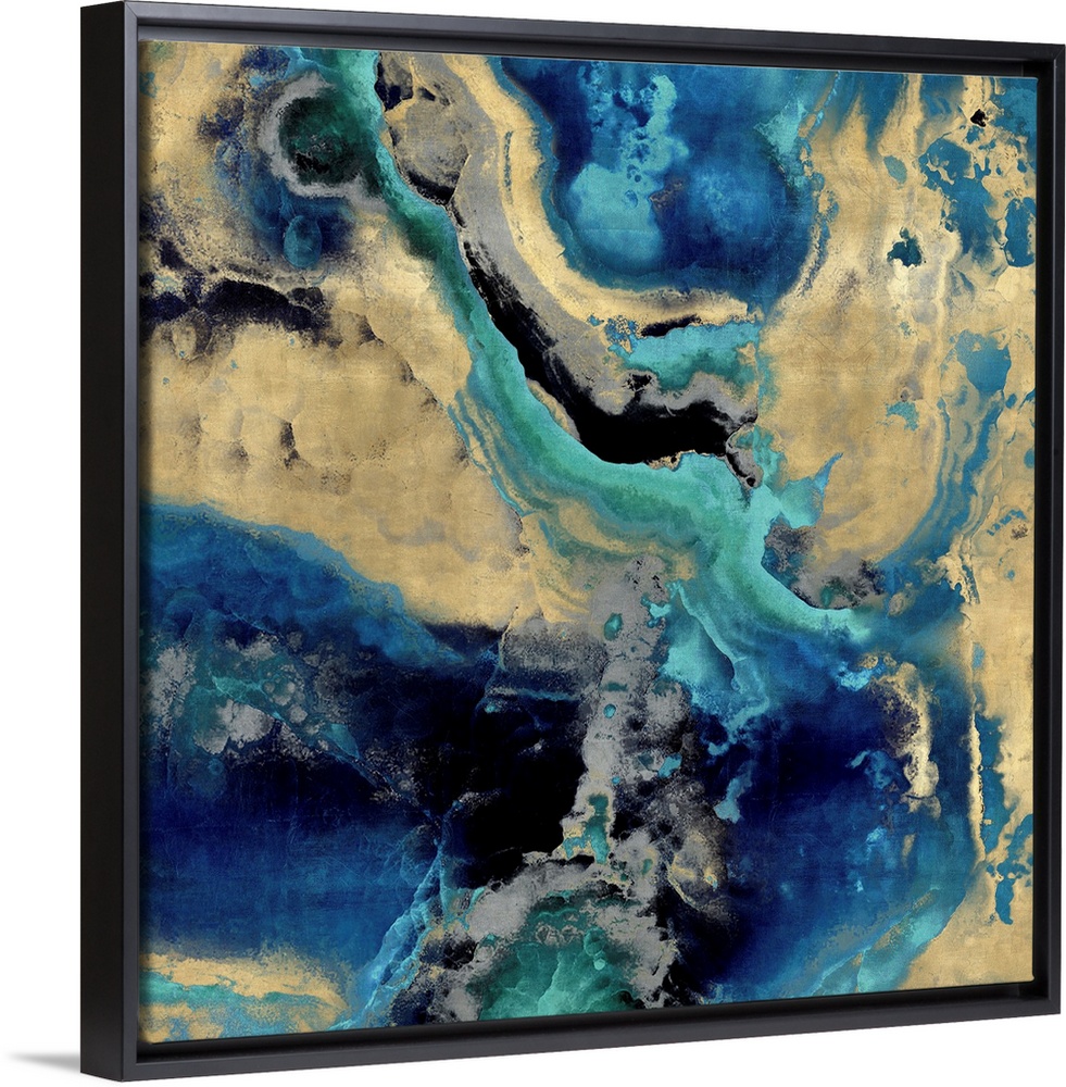 <p>Contemporary artwork featuring a deluge of blues and gold colors that have been edited to a marble effect.</p>