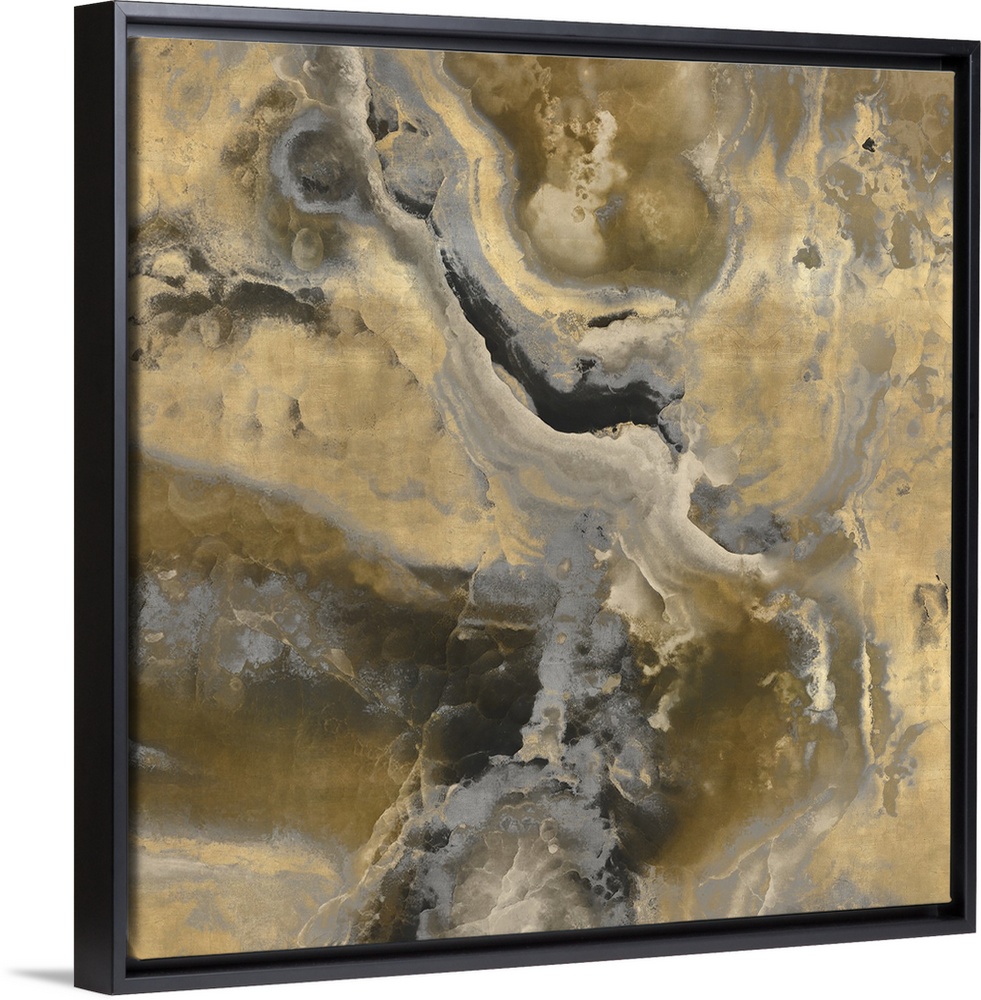 <p>Contemporary artwork featuring a deluge of grays and gold colors that have been edited to a marble effect.</p>