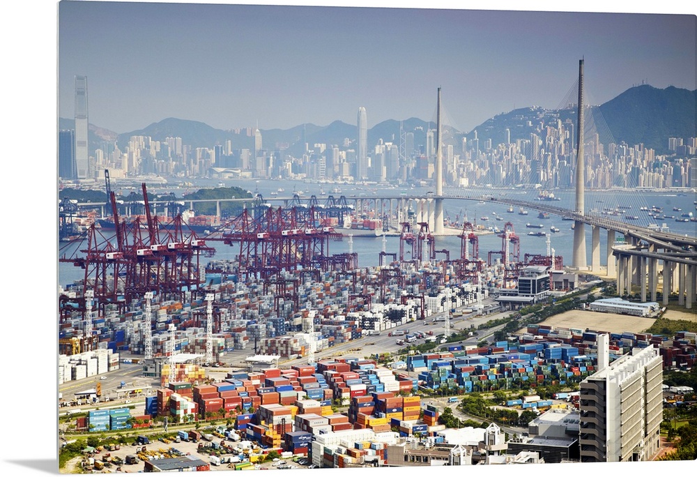 <p>View of Stonecutters Bridge with Hong Kong Island in background, Hong Kong, China</p>