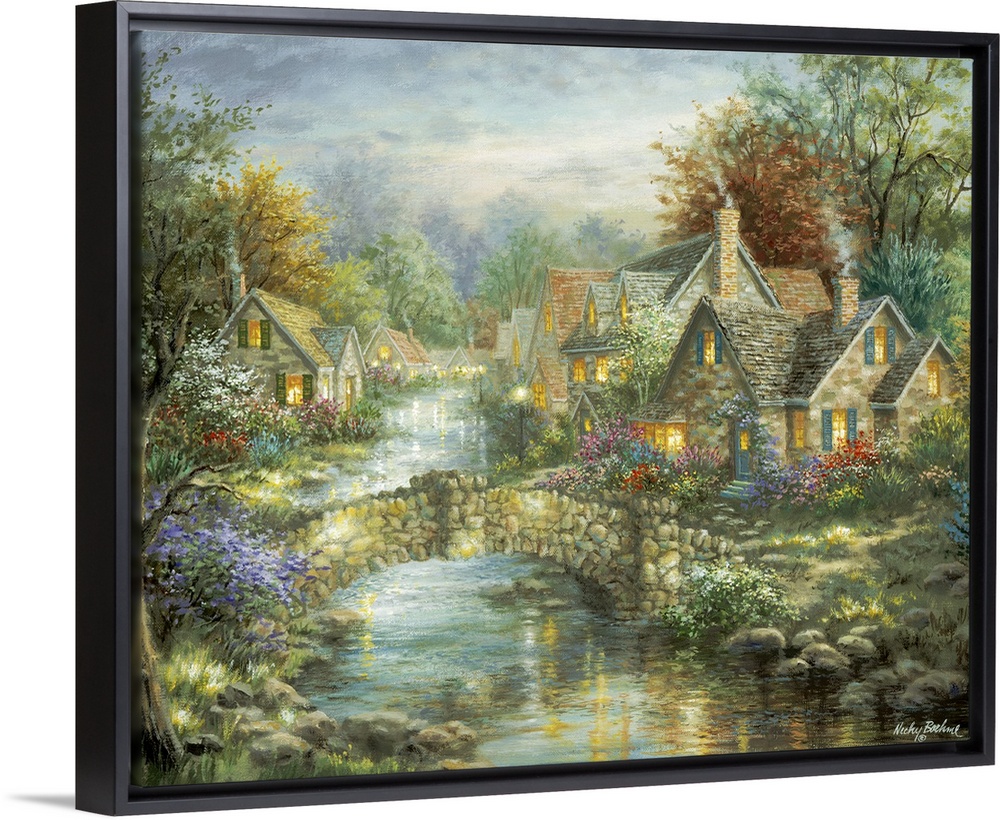 <p>Nicky Boehme imagines a world full of light and goodness in paintings that capture idyllic scenes of the laid-back life. Boehme is the consummate artist who painted as a young child and throughout her storied professional life. The dramatic interplay of light, color and mood create soothing scenery for wall art that will complement the atmosphere in quiet spaces such as bedrooms, reading nooks or dens. The world through the eyes and skilled brush strokes of Nicky Boehme glitters with romanticism and realism. You can almost taste the snow flurries covering a winter scene or hear the brook gurgling past a remote homestead.</p>
