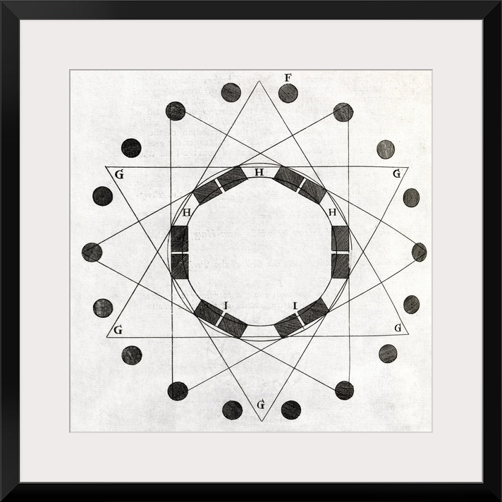 <p>Stonehenge, 17th century artwork. This megalithic stone circle was constructed over 5000 years ago as a Druid temple, burial ground, or astronomical observatory. The alignment of the stones is believed to have been used to make astronomical predictions. This is a ground plan demonstrating a possible geometry for the site of Stonehenge. This diagram was part of a survey and restoration of the site carried out by the British architect Inigo Jones (1573-1652), and published in The most notable antiquity of Great Britain, vulgarly called Stone-Heng. This artwork is from the 1725 edition.</p>