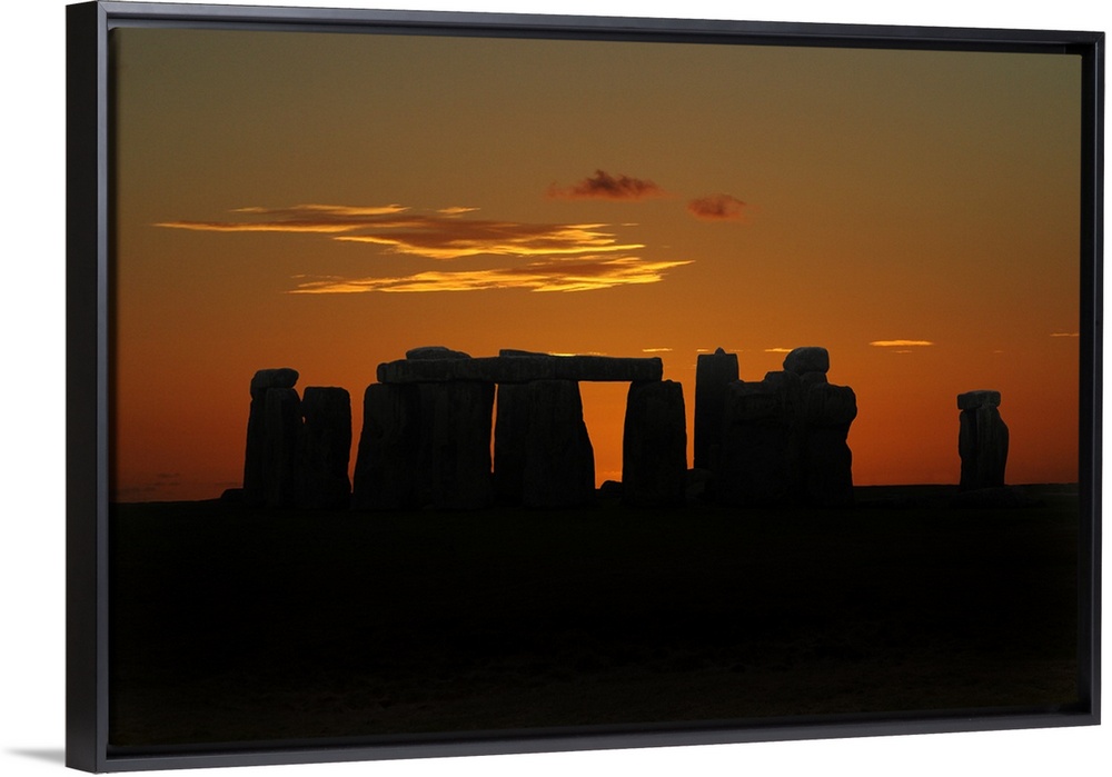 <p>Silhouette Stonehenge megalithic monument on Salisbury Plain in Wiltshire, England.</p>