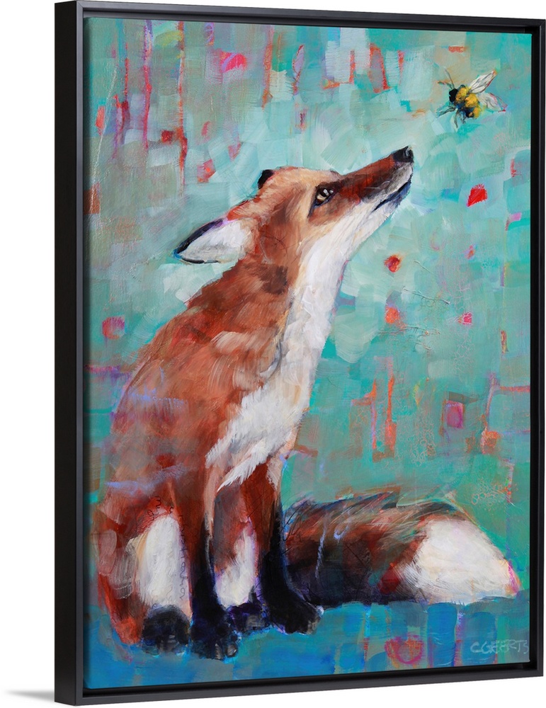 Art Blue Wall Art Contemporary Art Painting Wildlife Fox