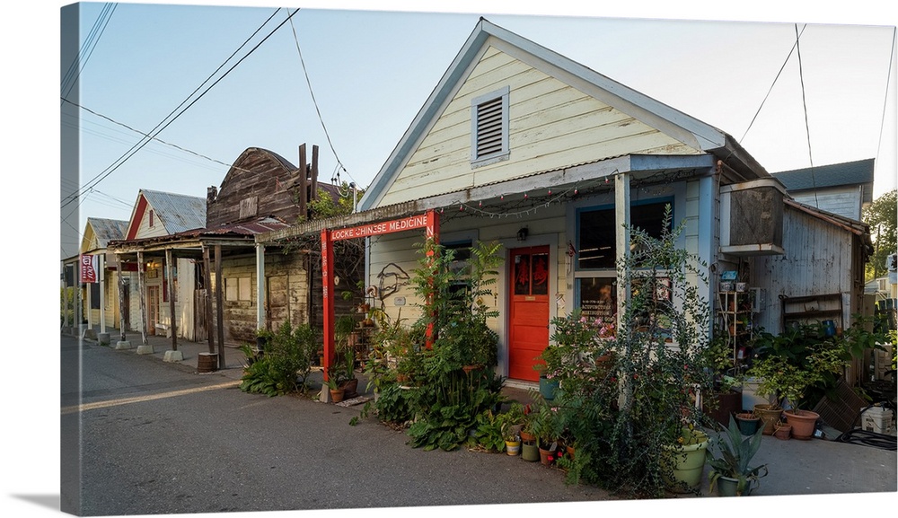 <p>Stores at the roadside on the street, chinese american town, locke, sacramentoae"san joaquin river delta, california, USA.</p>
