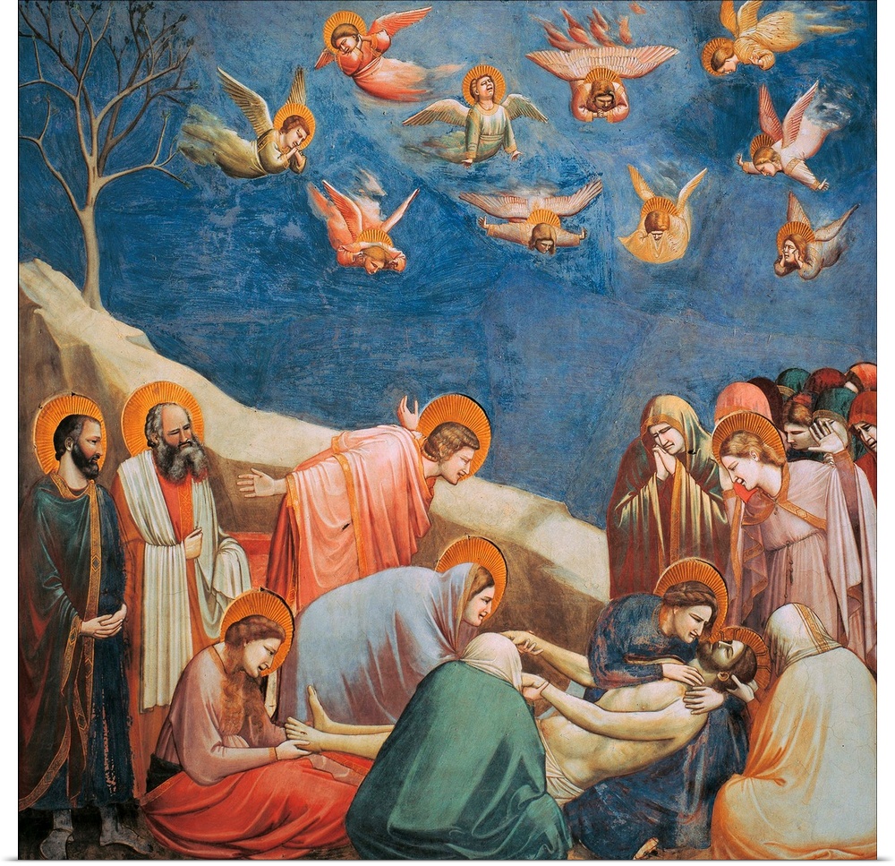 <p>Stories of the Passion The Mourning over the Dead Christ, by Giotto, 1303 - 1305 about, 14th Century, fresco, cm 200 x 185 - Italy, Veneto, Padua, Scrovegni Chapel. All. The Dead Christ mourned by St John the Baptist, the Virgin Mary, the Pious Women and</p>