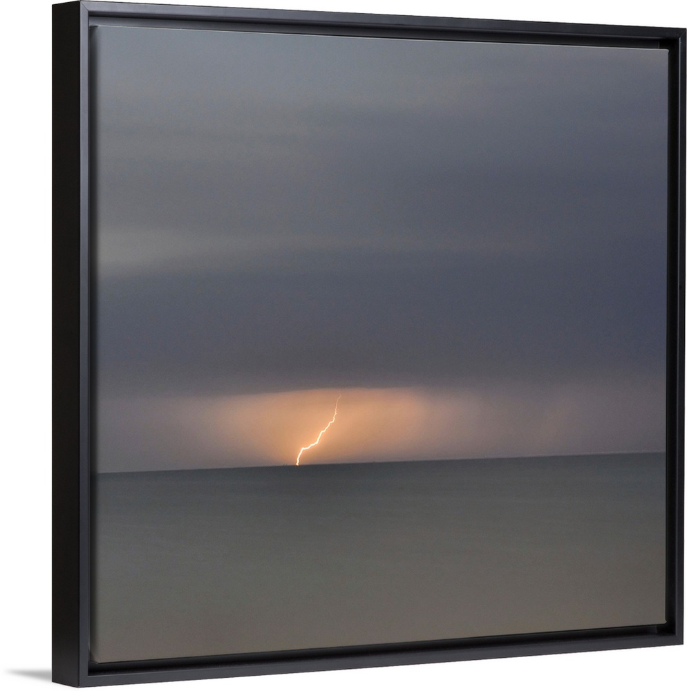 <p>Square picture of a storm flash above a long time exposure sea.</p>