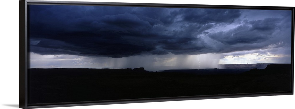 <p>A wide angle shot taken of an immense storm over canyons in Utah.</p>