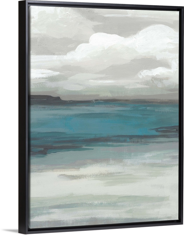 <p>A simple painting of a stormy, overcast sky above a tranquil sea.</p>