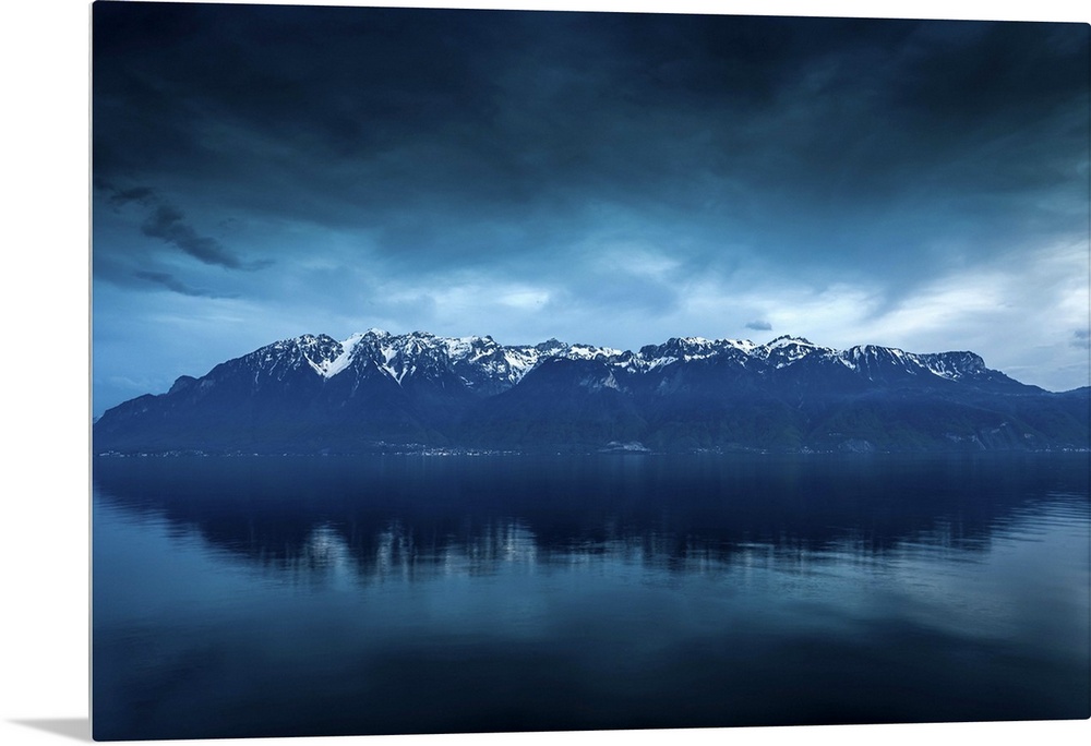 <p>Storm on the snowy French Alps and Lake Geneva as viewed from Saint-Saphorin on the Swiss side.</p>