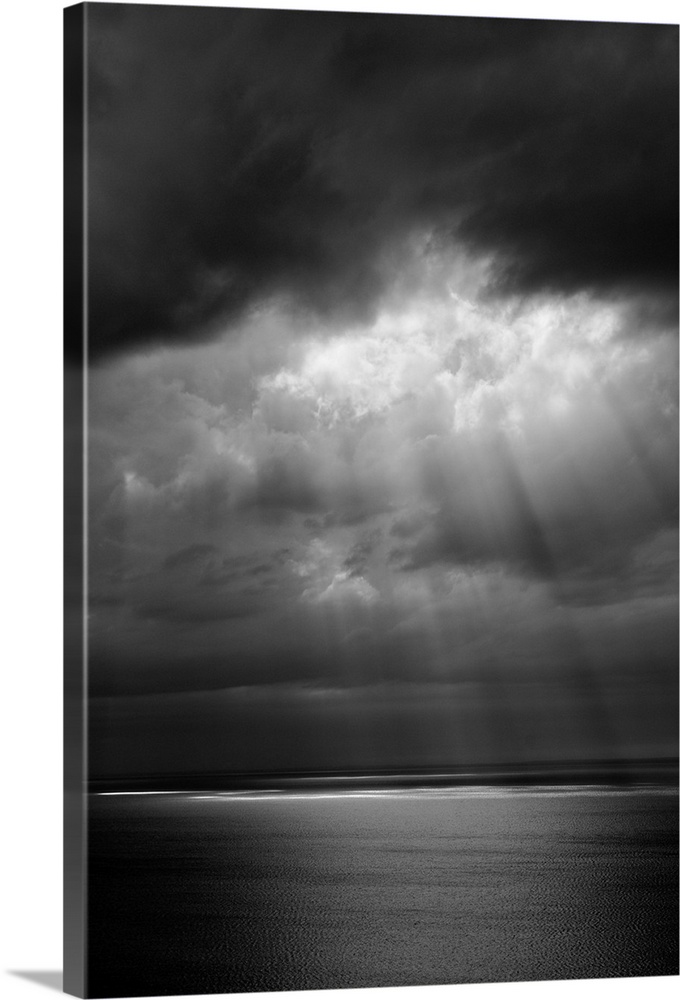 <p>Lake Superior storm breaking up leaving scattered spotlights over the water.</p>