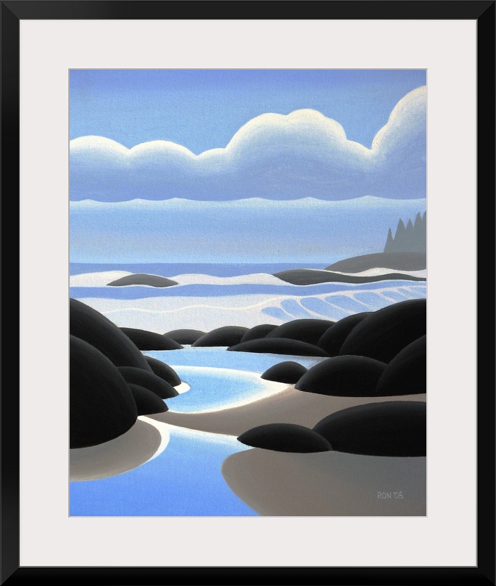 <p>Contemporary colorful painting of a wilderness coastline.</p>