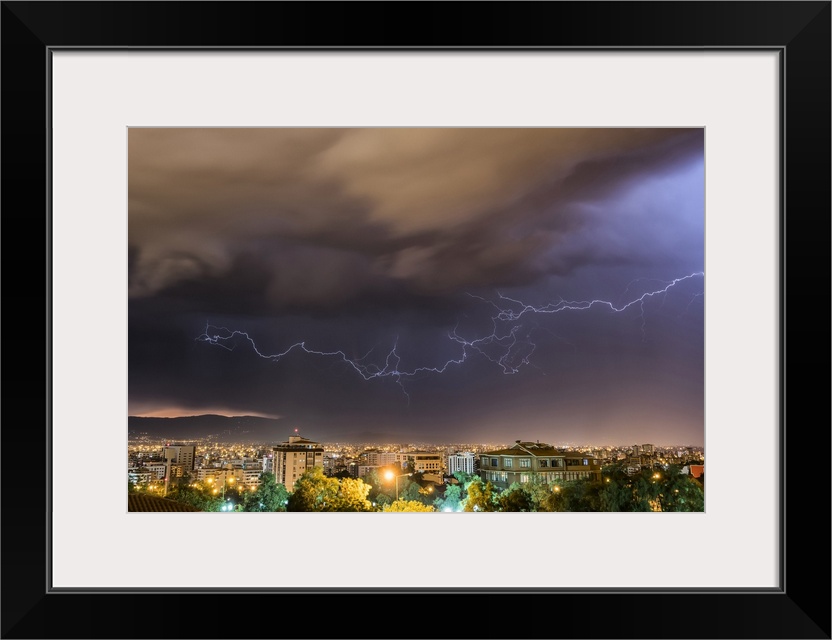<p>Stormy skies and lightning over a city at night; Cochabamba, Bolivia</p>