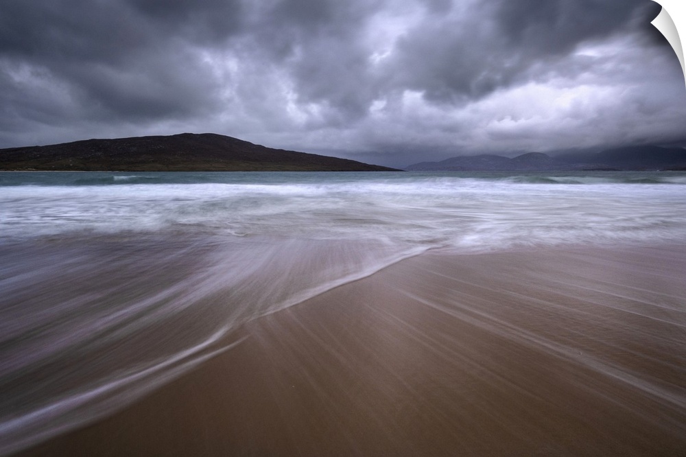<p>Stormy skies over the Island of Taransay from Luskentyre Beach, Isle of Harris, Outer Hebrides, Scotland, United Kingdom, Europe</p>