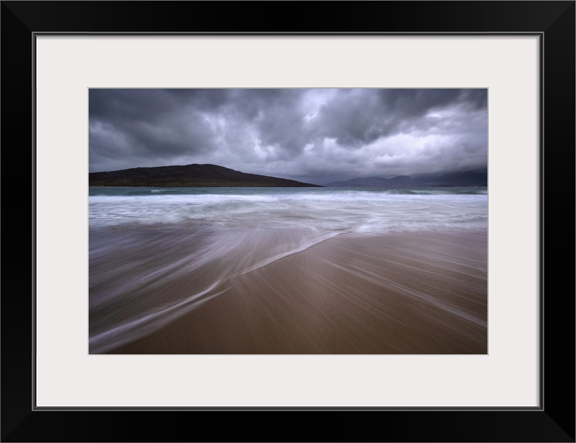 <p>Stormy skies over the Island of Taransay from Luskentyre Beach, Isle of Harris, Outer Hebrides, Scotland, United Kingdom, Europe</p>