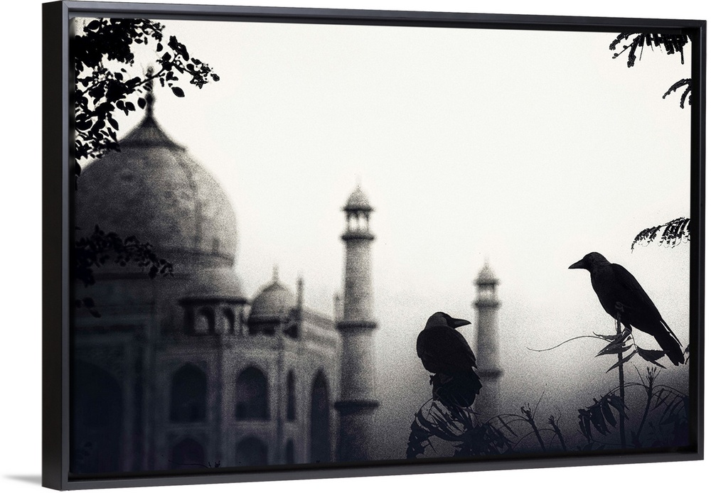 <p>Two crows sitting on branches with the Taj Mahal in the background.</p>