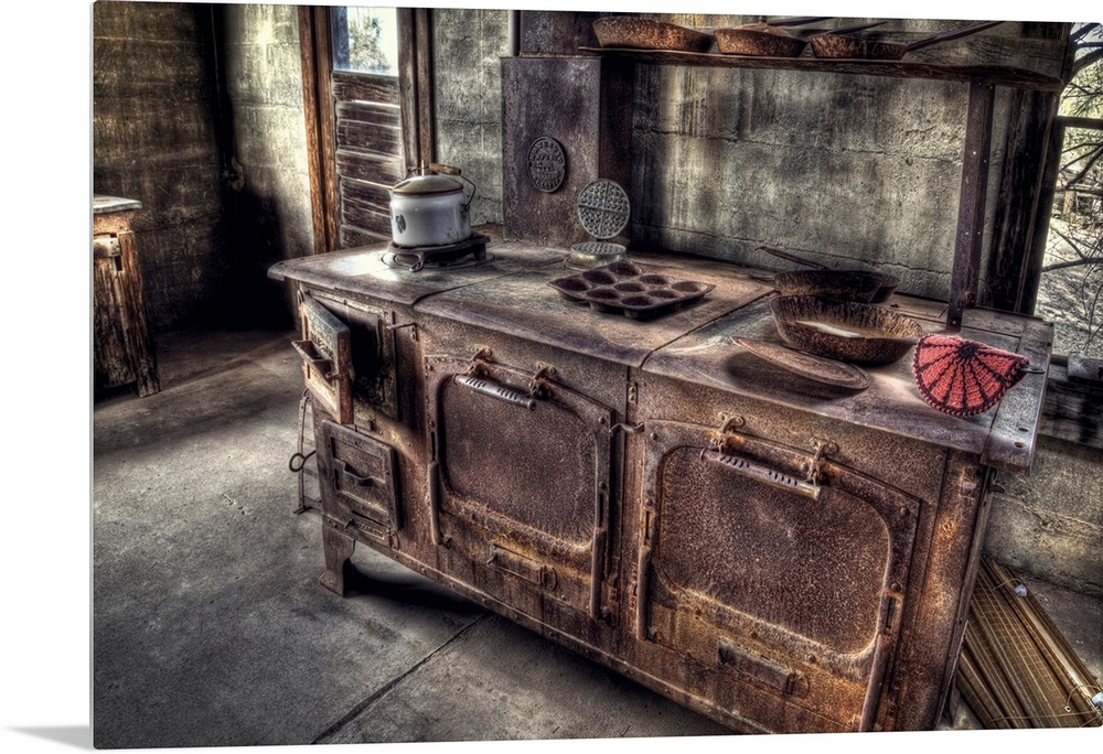 <p>An old, rusty cook stove found in the gold mine kitchen.</p>