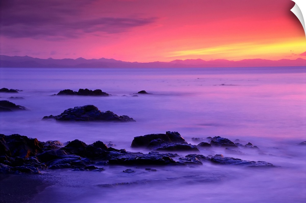 <p>Strait of Juan de Fuca at sunset near Jordan river, Vancouver Island British Columbia, Canada.</p>