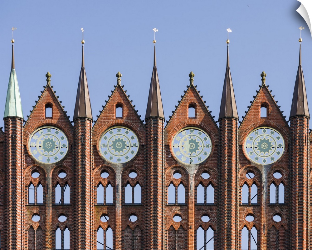 <p>The Alte Markt (old market) with the iconic town hall. The Hanseatic City Stralsund. The old town is listed as UNESCO World Heritage. Europe, Germany, West-Pomerania, June.</p>