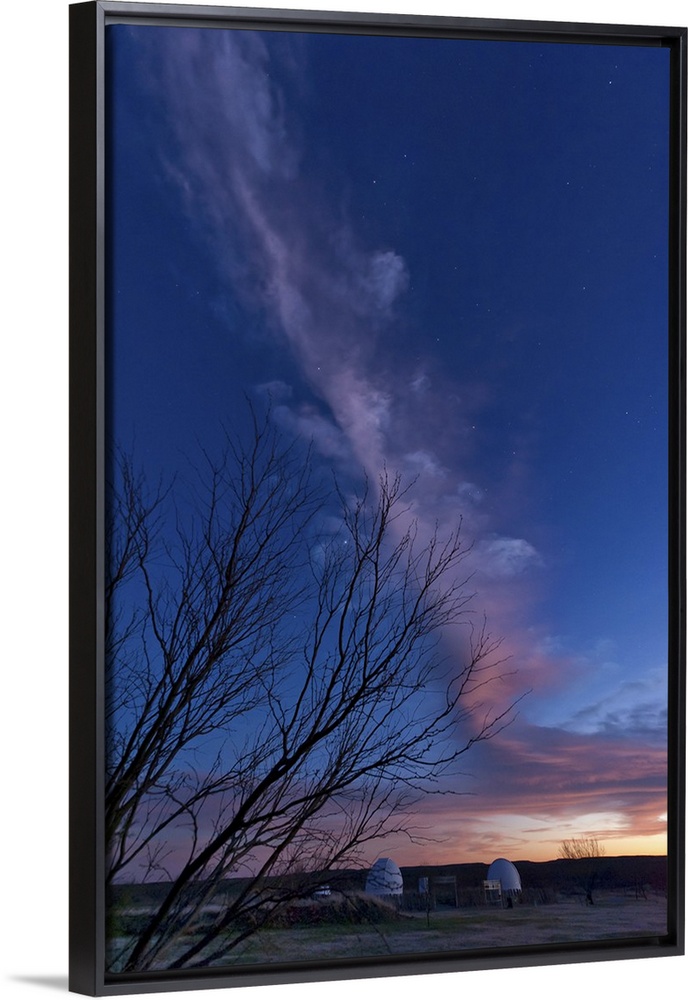 <p>Strange column cloud over observatories at sunset, Crowell, Texas.</p>