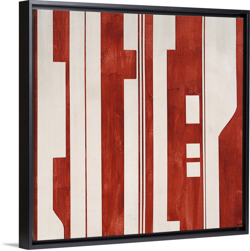 <p>Modern artwork featuring a mixture of red and light colored shapes.</p>