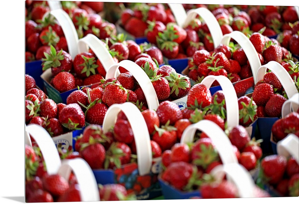 <p>Strawberries at a market stall</p>