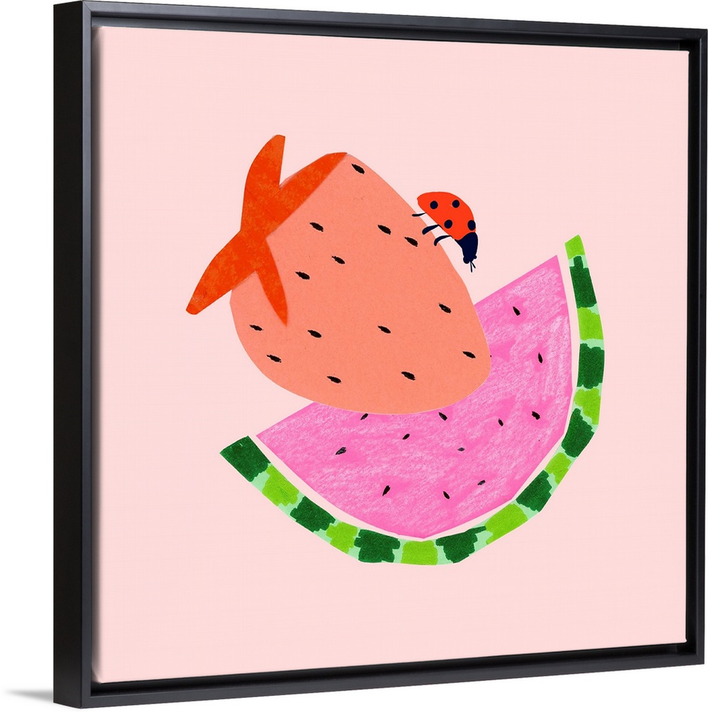 Art Kitchen Wall Art Pediatrician Office Art Punchy Pastels Decorative Art Food and Drink Food Fruit Strawberry Watermelon Graphic Art Pink Wall Art Wildlife Insect and Arachnid Ladybug