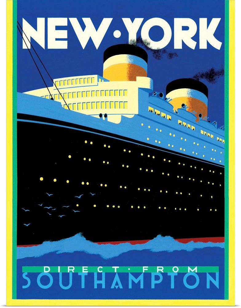 Art Blue Wall Art Contemporary Art Graphic Art Brian James New York Transportation Ship Travel Posters Retro Travel Posters