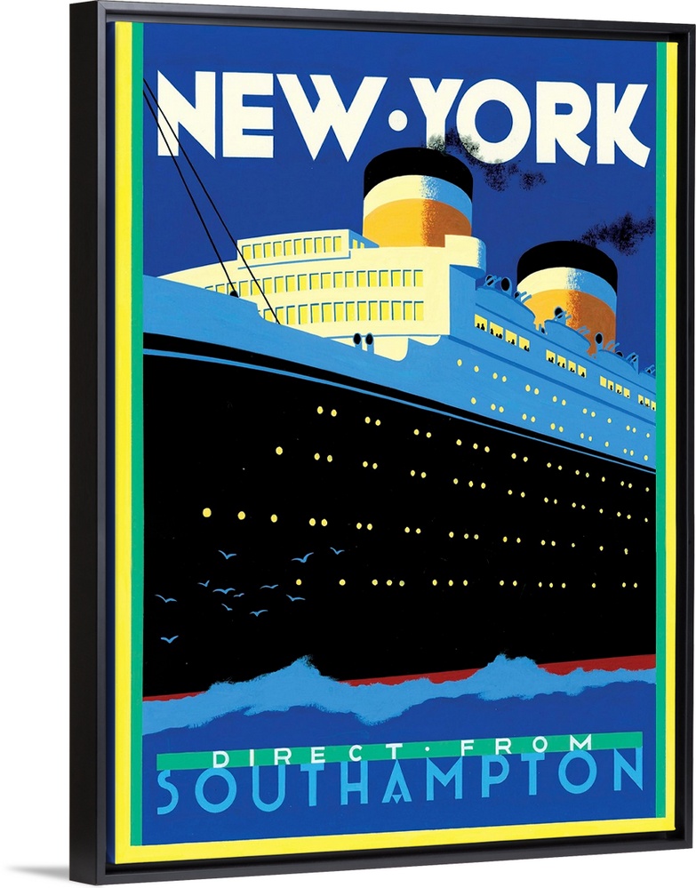<p>Contemporary retro stylized travel poster for ship transportation to New York.</p>