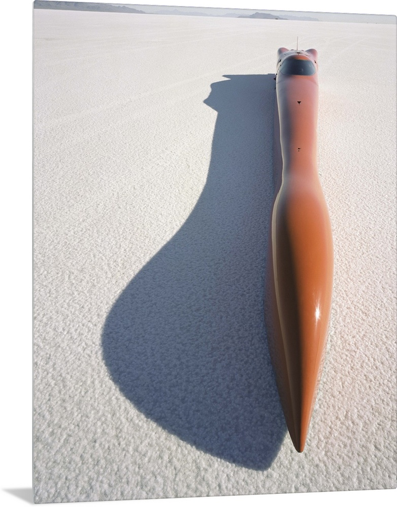 <p>Streamliner racecar, elevated view, Bonneville Salt Flats, Utah, USA</p>