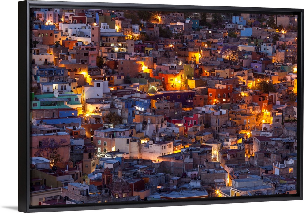 <p>Mexico, Guanajuato. Street lights add ambience to this twilight village scene.</p>
