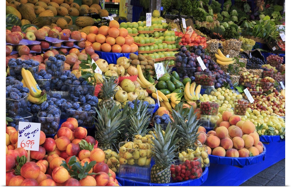 <p>Turkey,Istanbul, Kadikoy District,street market featuring a wide variety of fresh fruits.</p>