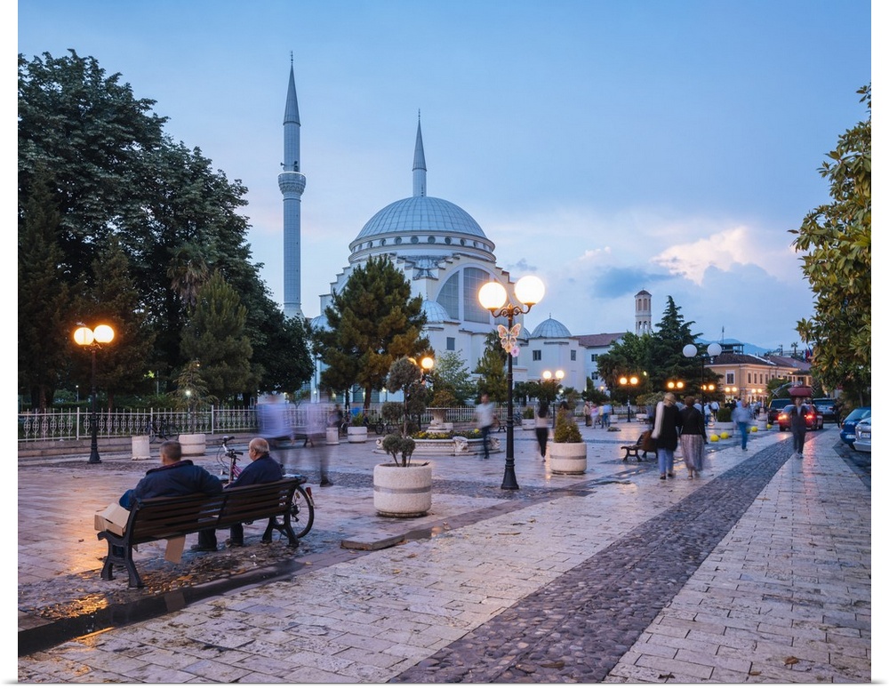 <p>Street scene with Exterior of Xhamia e Madhe Mosque in background, Old Town, Shkodra, Albania</p>