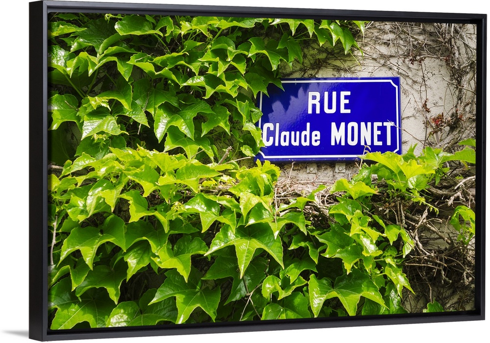<p>Street sign and ivy covered wall, Giverny, Normandy, France.</p>
