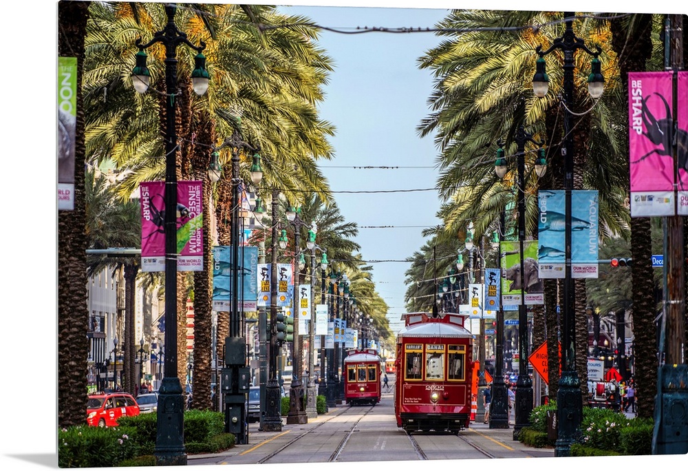 <p>Streetcars traveling in New Orleans, Louisiana.</p>