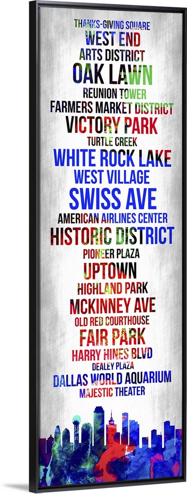 <p>Contemporary watercolor bus roll art incorporating the Dallas city skyline.</p>