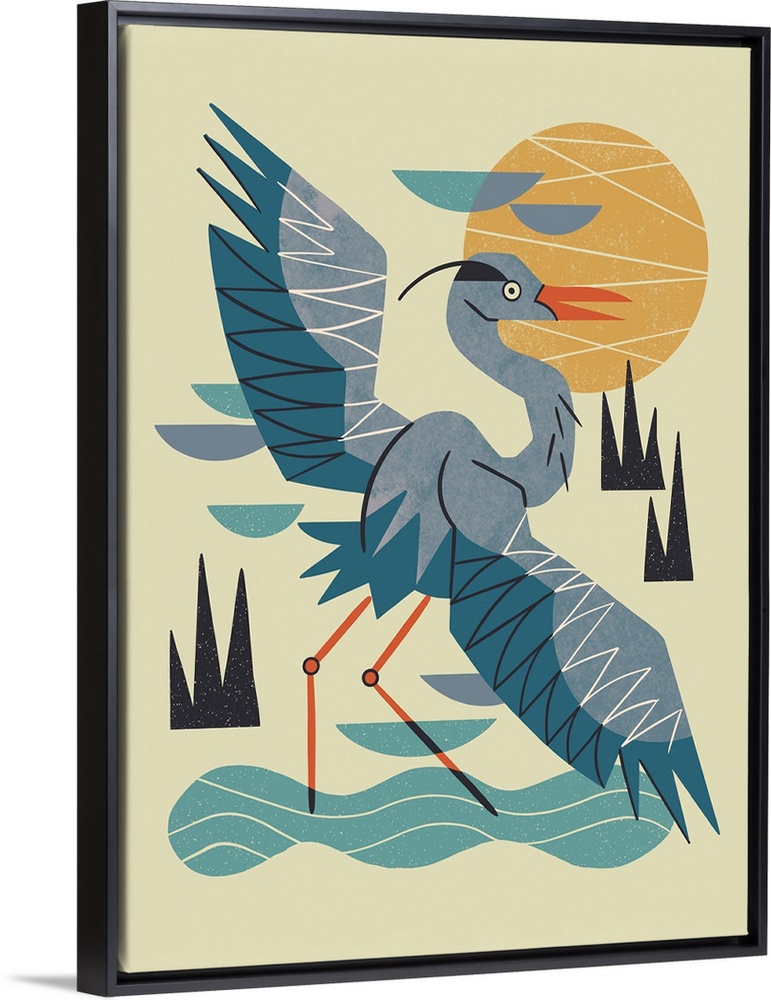 Art Blue Wall Art Contemporary Art Graphic Art Renea L. Thull Wildlife Bird Heron and Egret