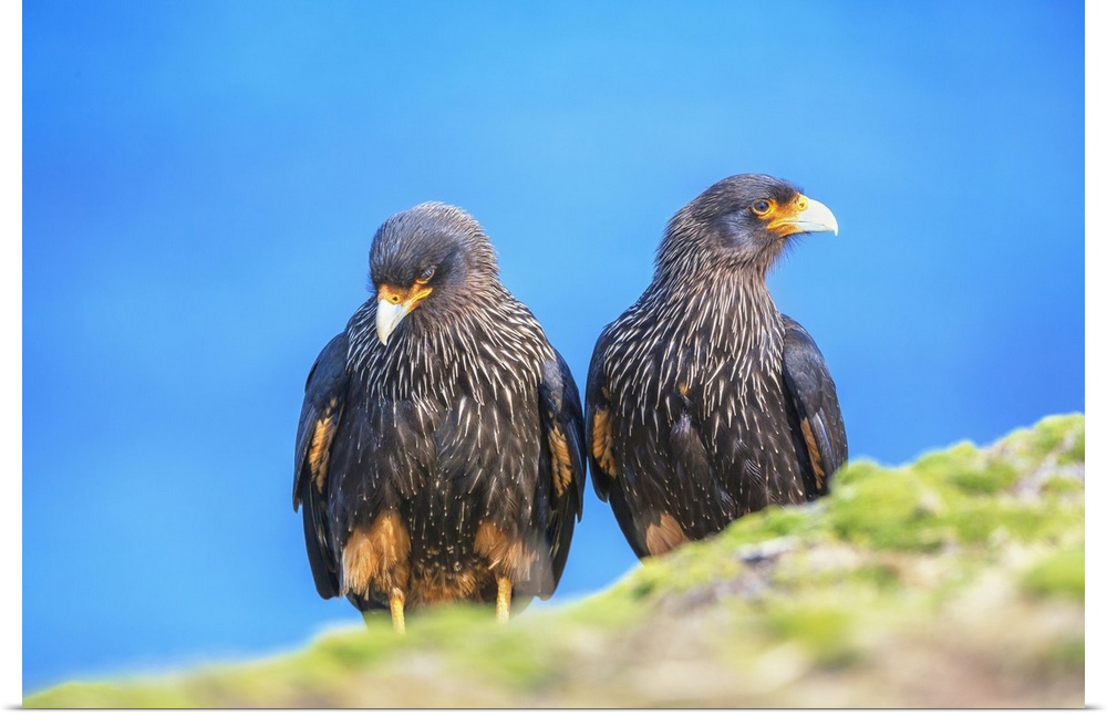 <p>Striated Caracara (Phalcoboenus australis) pair, Sea Lion Island, Falkland Islands, South America</p>