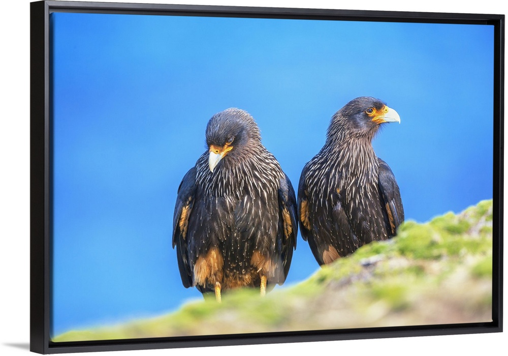 <p>Striated Caracara (Phalcoboenus australis) pair, Sea Lion Island, Falkland Islands, South America</p>