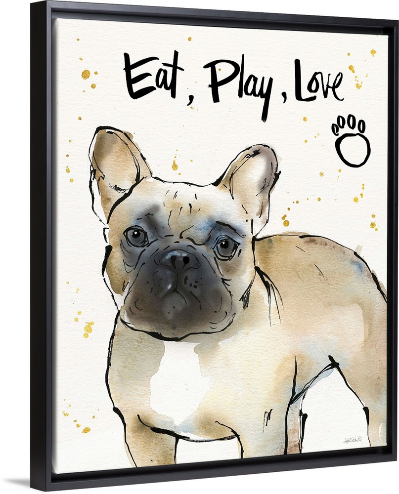 <p>"Eat, Play, Love" watercolor painting of a French Bulldog.</p>