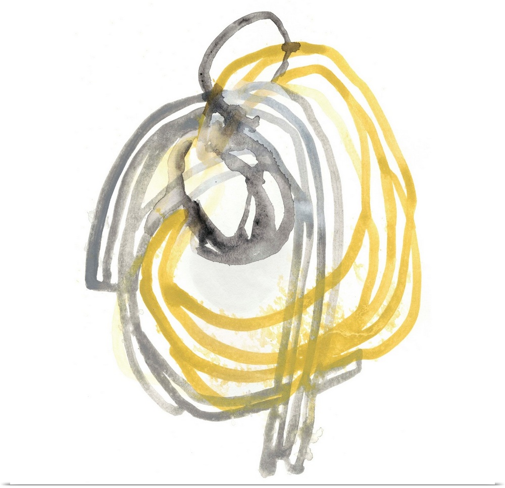 <p>Abstract gestural artwork of yellow and grey lines swirling and intertwining.</p>