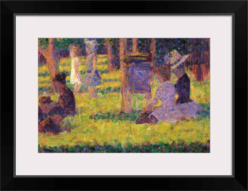 <p>Study for A Sunday Afternoon on the Island of La Grande Jatte, by Georges Seurat, 1884, 19th Century, canvas, cm 16 x 25 - France, Ile de France, Paris, Muse dOrsay, RF2828. All. Study Sunday afternoon on the island of la Grande Jatte woman hat purple lil</p>