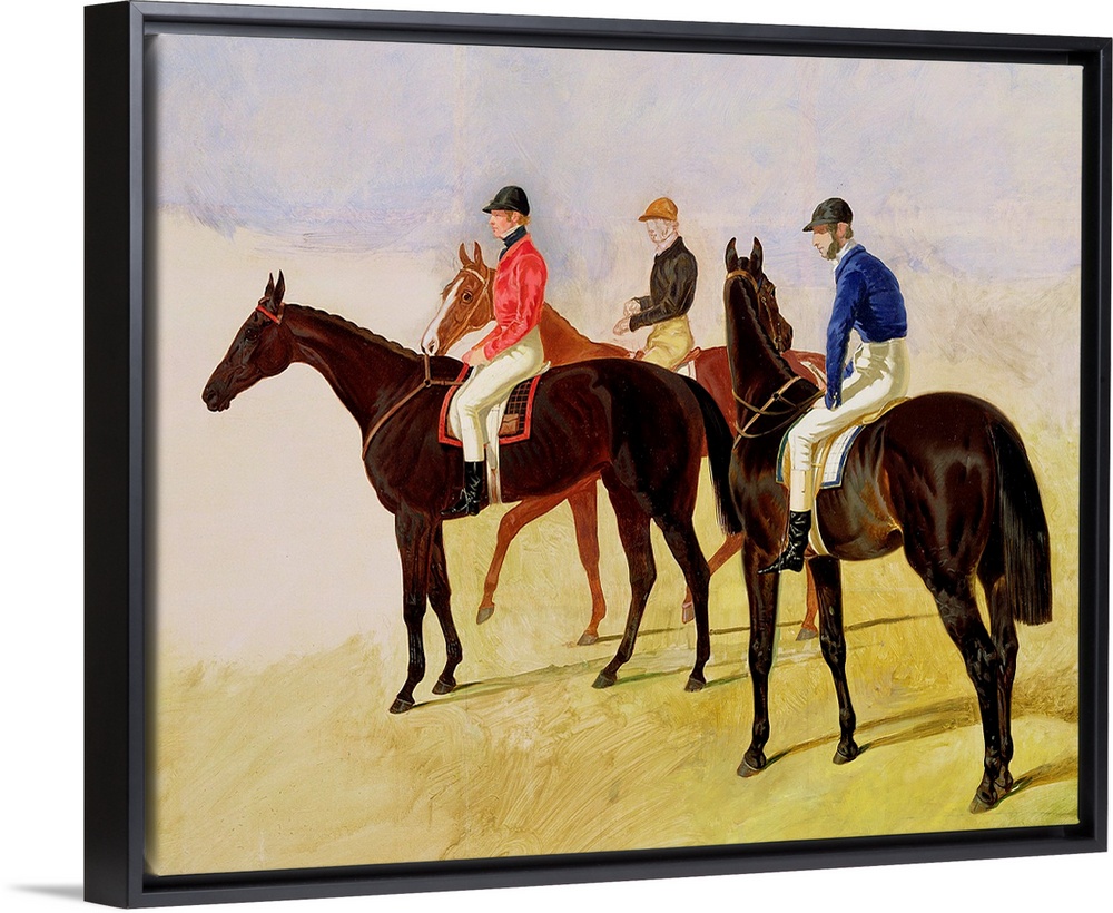 <p>XYC159893 Study of Three Steeplechase Cracks: Allen McDonough on Brunette, Tom Oliver on Discount and Jem Mason on Lottery, or Three Racehorses with Jockeys Up (oil on canvas) by Herring Snr, John Frederick (1795-1865)</p>